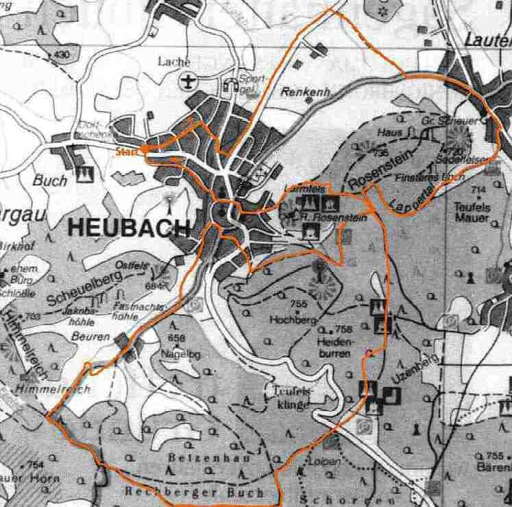 Heubach - Rodelwiesen - Parkplatz Kaufhaus Höhe=450m / km=0,0 |